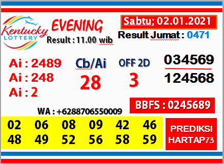 Kentucky Evening Sabtu 02 01 2021 Hartap73 Jitu 2d Prediction