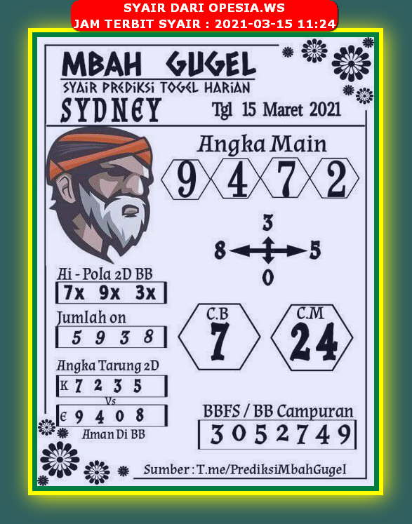 Prediksi Togel Sydney 15 Maret 2021 Kodal Prediksi
