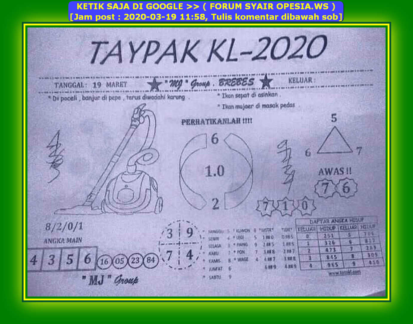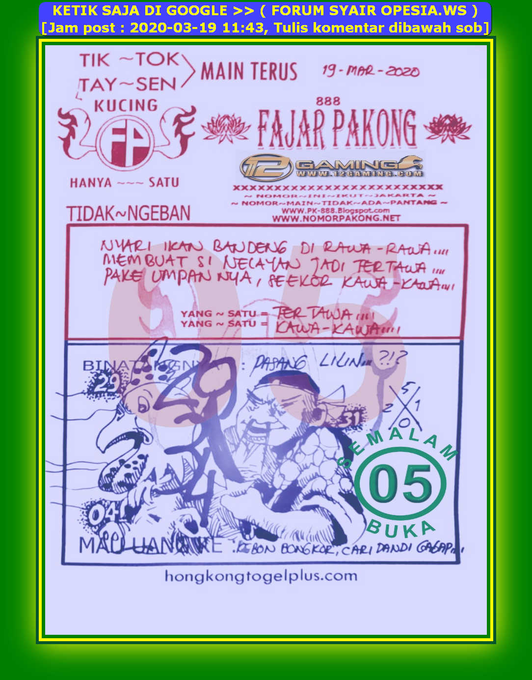 Kode Syair Hongkong 19 Maret 2020 Forum Syair Togel Hongkong Singapura Sydney