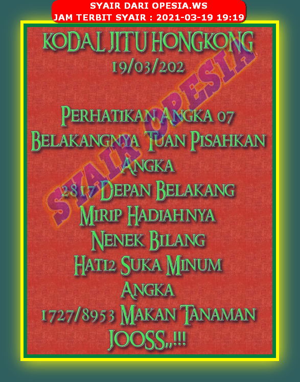 Syair Hk Hari Ini Jumat 19 Maret 2021 Opesia Official