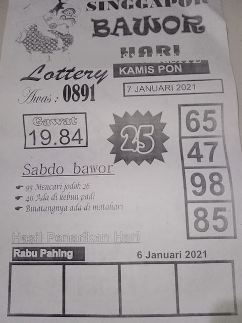 Kode Syair Singapore Kamis 7 Januari 2021 Kumpulan Syair Toto