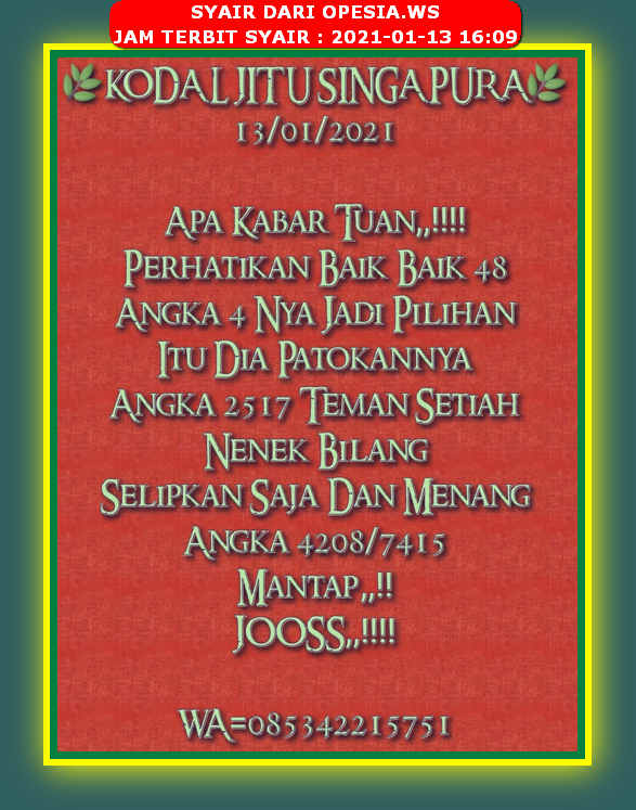 Syair Sgp Hari Ini Rabu 13 Januari 2021 Opesia Official