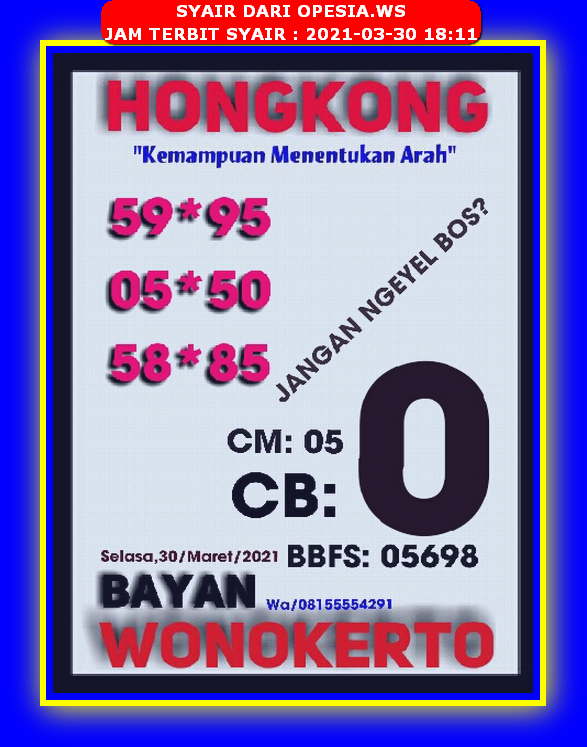 Syair Hk Hari Ini Selasa 30 Maret 2021 Opesia Official