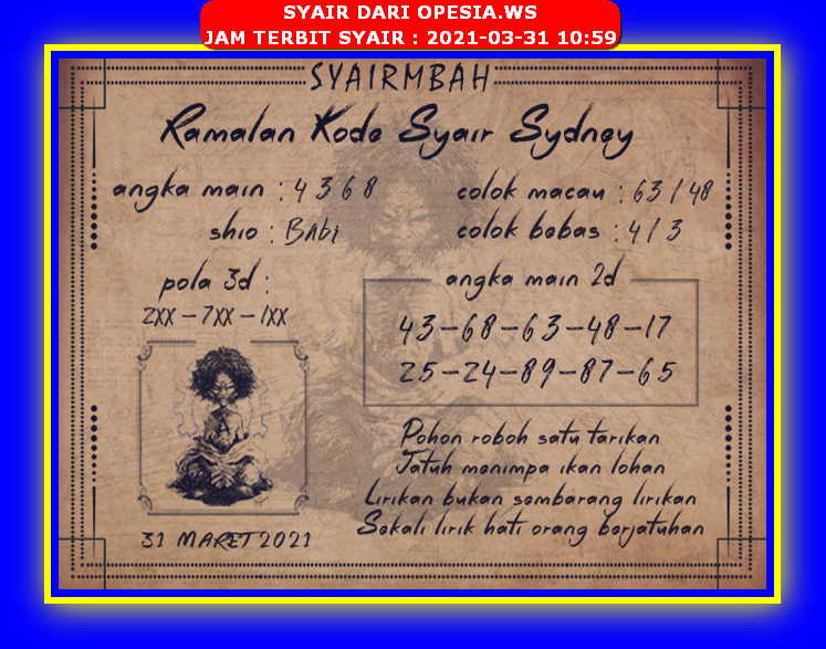 Syair Sgp Hari Ini Rabu 31 Maret 2021 Opesia Official