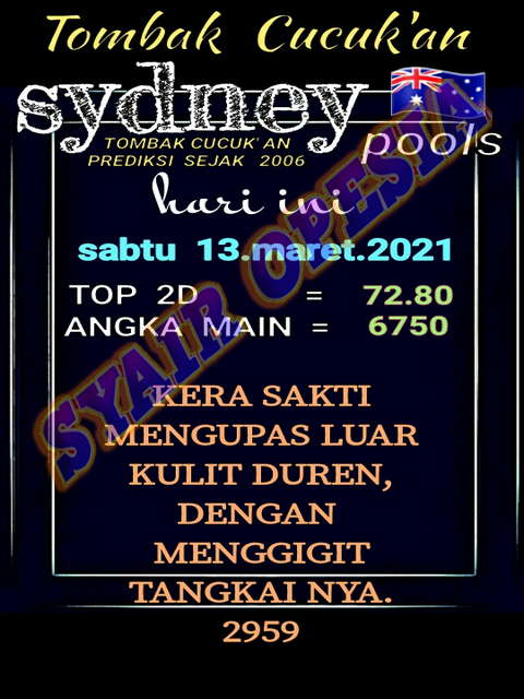 Kode Syair Sydney Sabtu 13 Maret 2021 Kumpulan Syair Toto