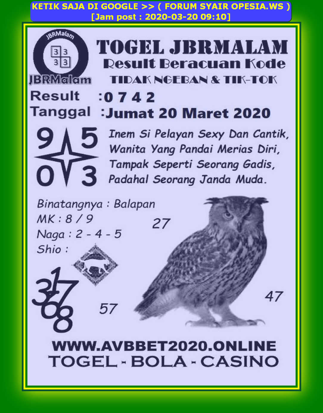 Syair Sgp Sabtu 20 Maret 2021 Forum Kode Syair Toto