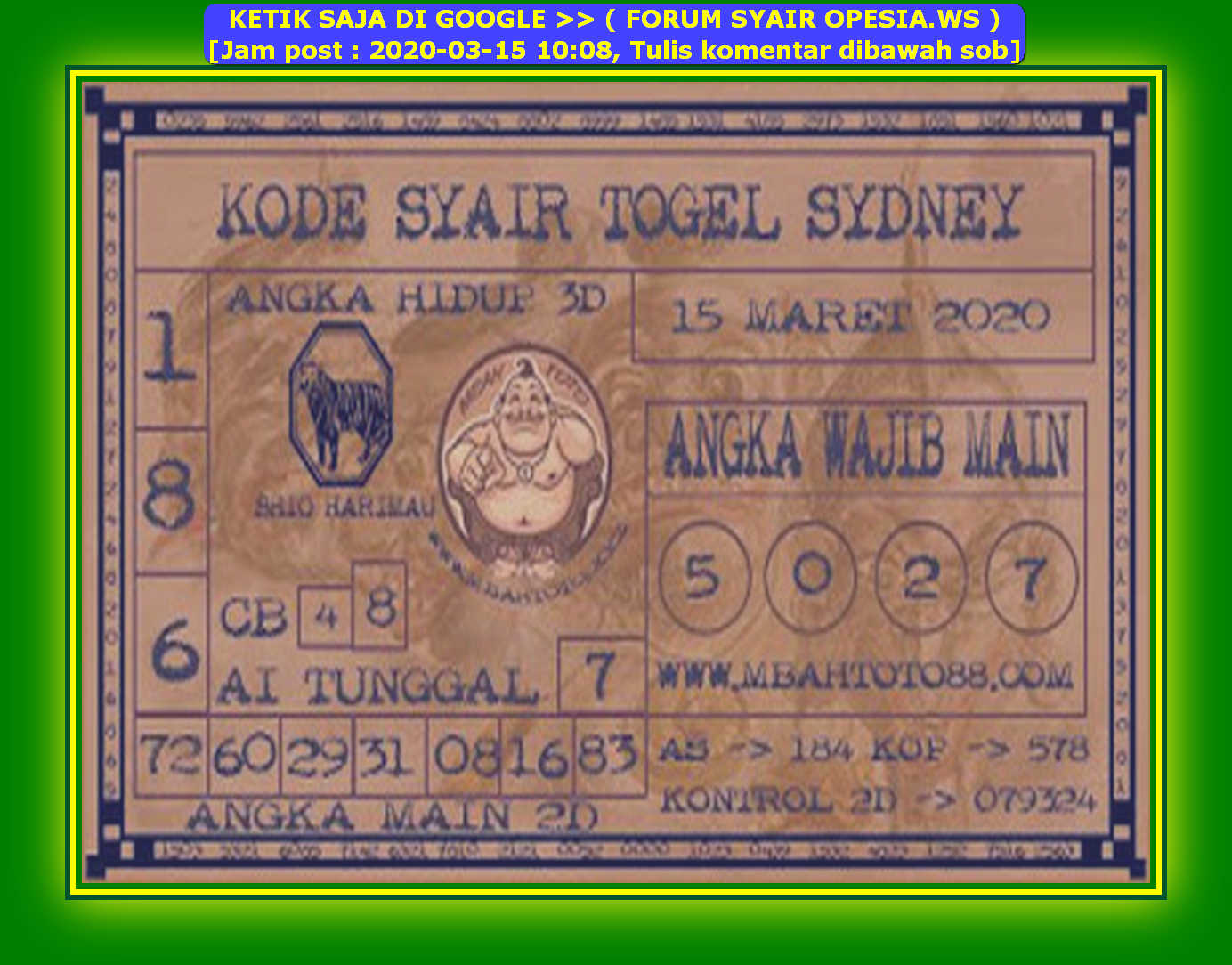 Kode Syair Sydney 15 Maret 2020 Forum Syair Togel Hongkong Singapura Sydney