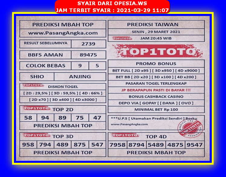 Syair Sdy Hari Ini Senin 29 Maret 2021 Opesia Official