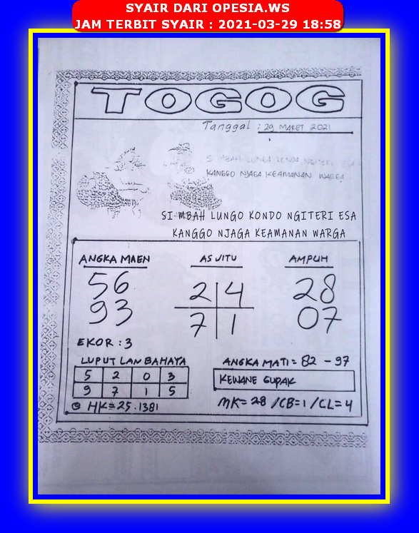 Syair Hk Hari Ini Senin 29 Maret 2021 Opesia Official