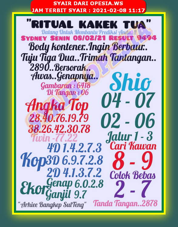 Syair Sdy Hari Ini Senin 8 Februari 2021 Opesia Official