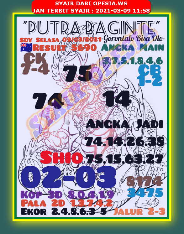 Syair Sdy Hari Ini Senin 8 Maret 2021 Opesia Official