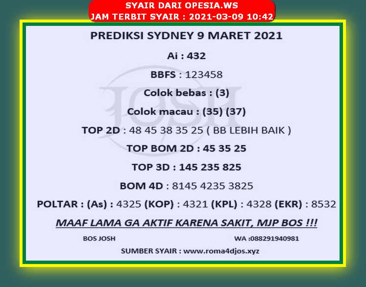 1 New Message Kode Syair Sydney 9 Maret 2021 Forum Syair Togel Hongkong Singapura Sydney