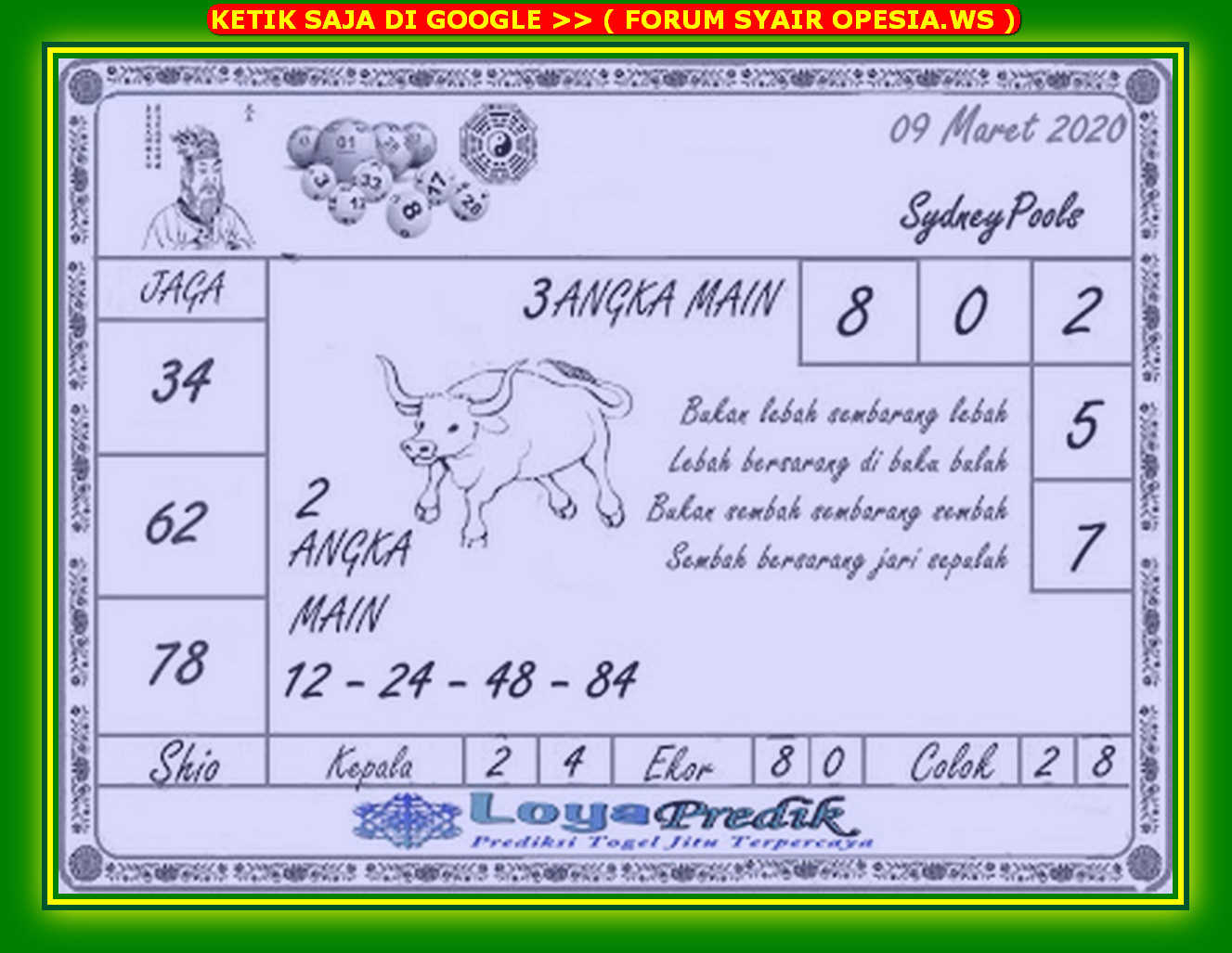 Kode Syair Sydney 9 Maret 2020 Forum Syair Togel Hongkong Singapura Sydney