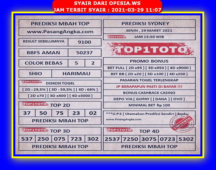 Opesia Sydney 29 Maret 2022. Prediksi Sydney Angka Keluar 6 maret 2021. Kode syair atau forum syair itu sama saja maka simpan halaman ini ya. Ada beberapa kode syair togel sydney yang sekira nya sudah. Syair Sydney Hari rabu 10 maret 2021.