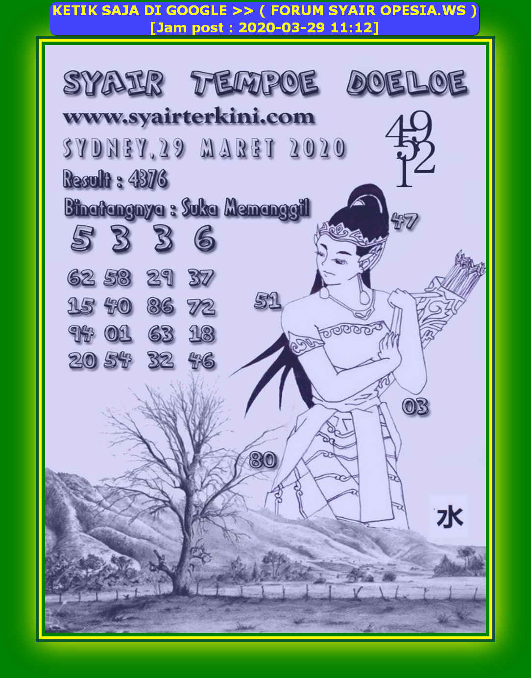 Kode Syair Sydney 29 Maret 2020 Forum Syair Togel Hongkong Singapura Sydney