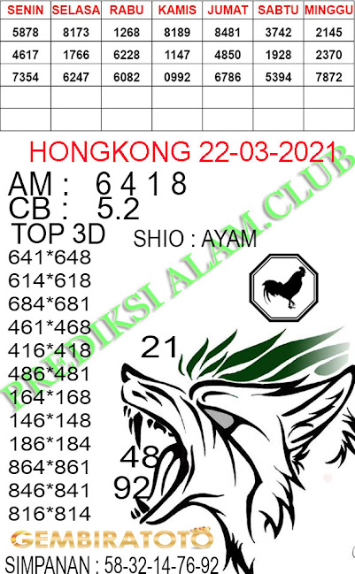 Prediksi Togel Hk Senin 22 Maret 2021 Bocoran Hk Prediksi Jp