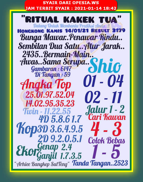 Syair Hk Kamis 14 Januari 2021 Royal Syair
