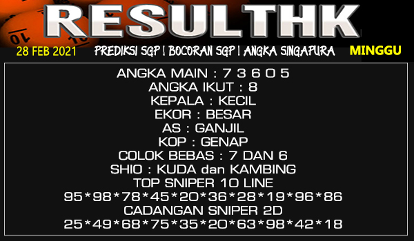 Prediksi Sgp Minggu 28 Februari 2021 Togel Singapura Resulthk Com