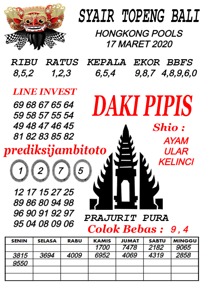 Prediksi Syair Hk 17 Maret 2020 Syair Togel Hk Pangkalantoto