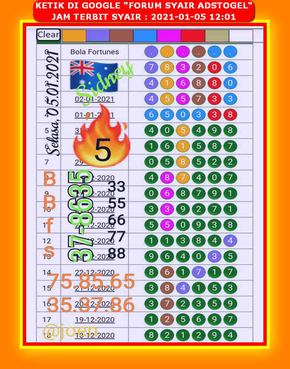 Bocoran Sydney 5 Januari 2021 Prediksi Angka Main