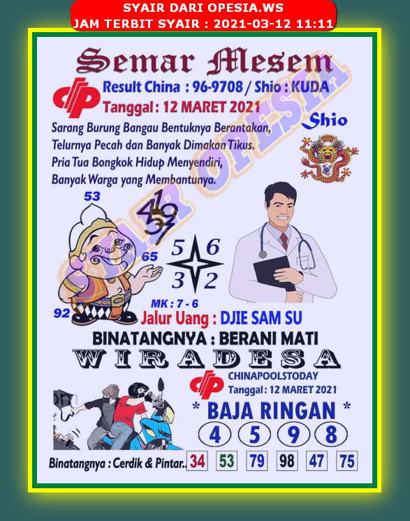 41 Syair Sdy 12 Maret 2021 Omiframe Selasa Pon