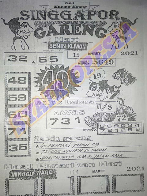 Syair Sgp Hari Ini Senin 15 Maret 2021 Opesia Official