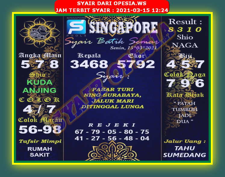 Syair Sgp Hari Ini Senin 15 Maret 2021 Opesia Official