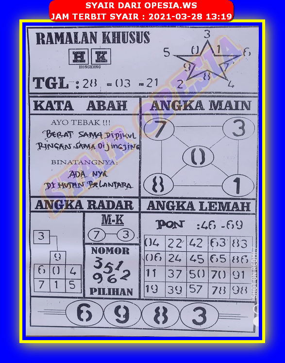 Syair Hk Hari Ini Minggu 28 Maret 2021 Opesia Official