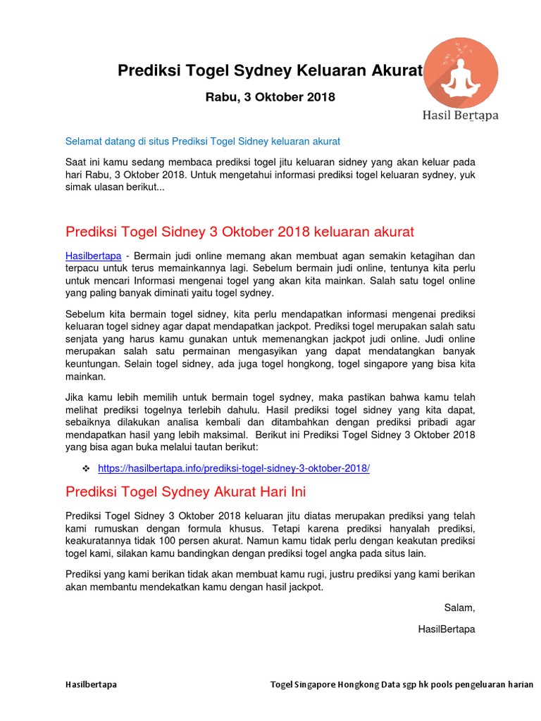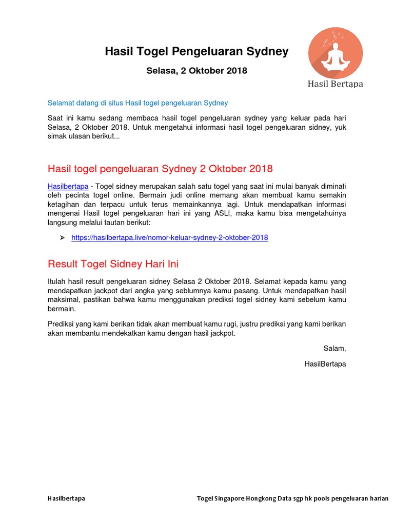 Hasil Togel Pengeluaran Sydney 2 Oktober 2018 Hasilbertapa Pdf