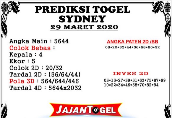 Prediksi Togel Sidney Minggu 29 Maret 2020 Prediksitogel Jp