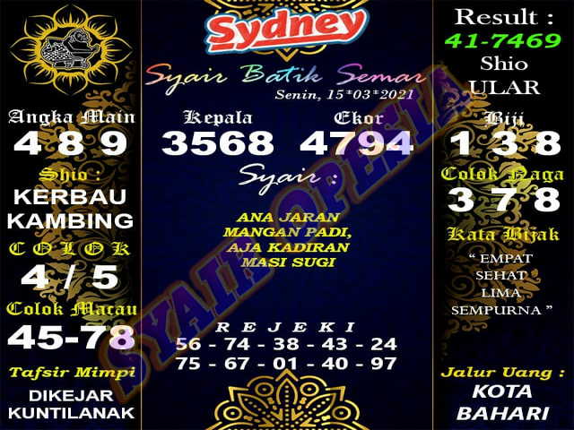 Prediksi Syair Sydney 15 Maret 2021 Keluaran Sydney Judi Slot