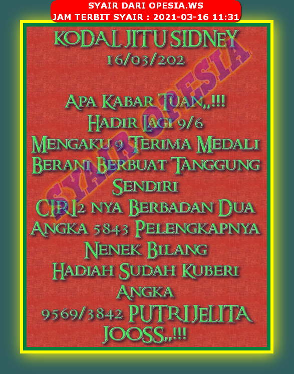 Kode Syair Sydney Selasa 16 Maret 2021 Kumpulan Syair Toto