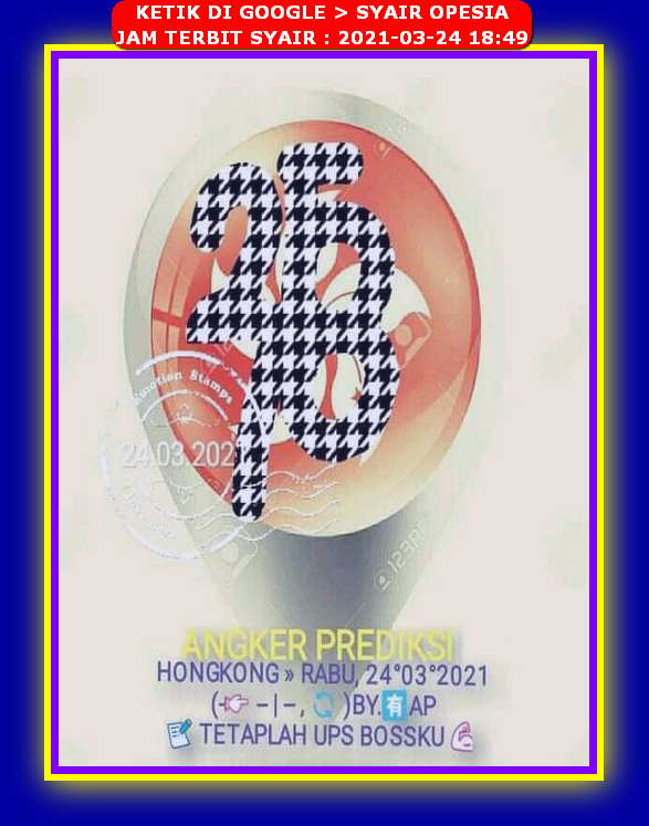 Prediksi HK Syair Hongkong 23 maret 2021 Bocoran hongkong atau togellers biasa menyebutnya dengan prediksi adalah sebuah kemungkinan nomor yang akan keluar pada saat pengumuman togel hkSetiap orang dapat membuat prediksi mereka masing-masing namun demi mencapai hasil jackpoot banyak dari mereka yang menggunakan prediksi yang di. Syair Keluaran Prediksi Togel China Rabu 24 Maret 2021 Kamis 10 Februari 2022 Nomor Keluar Buka an Keluaran Prediksi Togel China Rabu 24 Maret 2021 Hari Ini. Kami akan membagikan dan secara menambahkan syair-syair sdy atau syair sidney terbaru dan terjitu setiap harinya. Yuk Daftar togel online di JON4D untuk mendapatkan syair togel hk atau nama yang lebih populer togel hongkong. Kode Syair Pak Tuntung Selasa 24 Maret 2020 Selamat datang kembali pada Forum Geng Prediksi bergambar Pak Tuntung Kode bergambar dibawah ini berlaku untuk 3 pasaran sekaligusYaitu pasaran Singapore pools sgp Hongkong pools Hk Sydney pools SdyAnda Diharap Fokus pada gambar pak tuntung dan semoga kita semua beruntung. Terima kasih atas kunjungan anda semoga hoki.