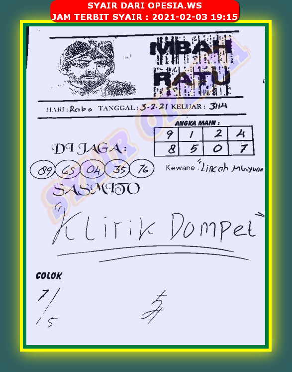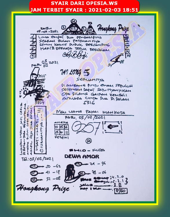 Syair Hk Hari Ini Rabu 3 Februari 2021 Opesia Official