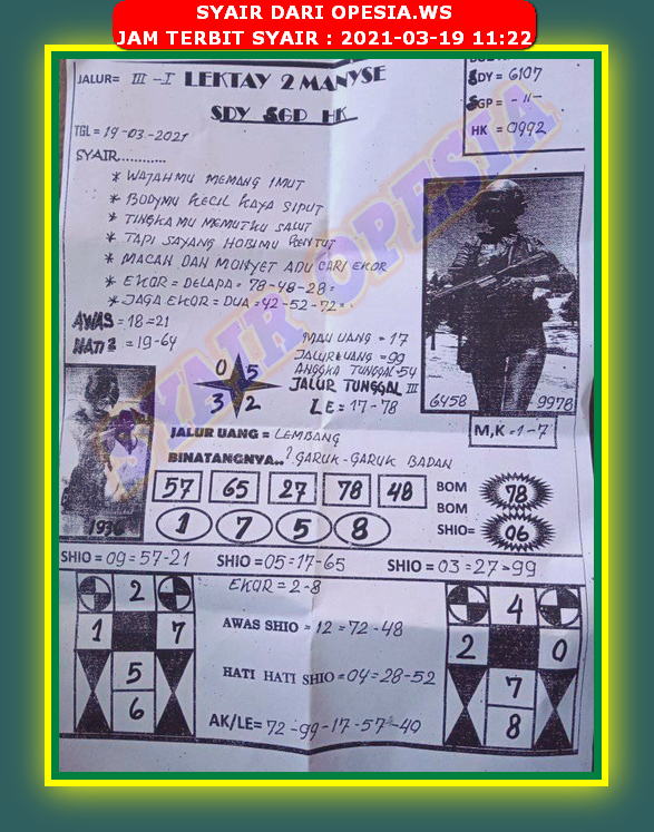 Syair Harian Sdy 19 Maret 2021 Kode Syair Sgp Hk Sd Motesia