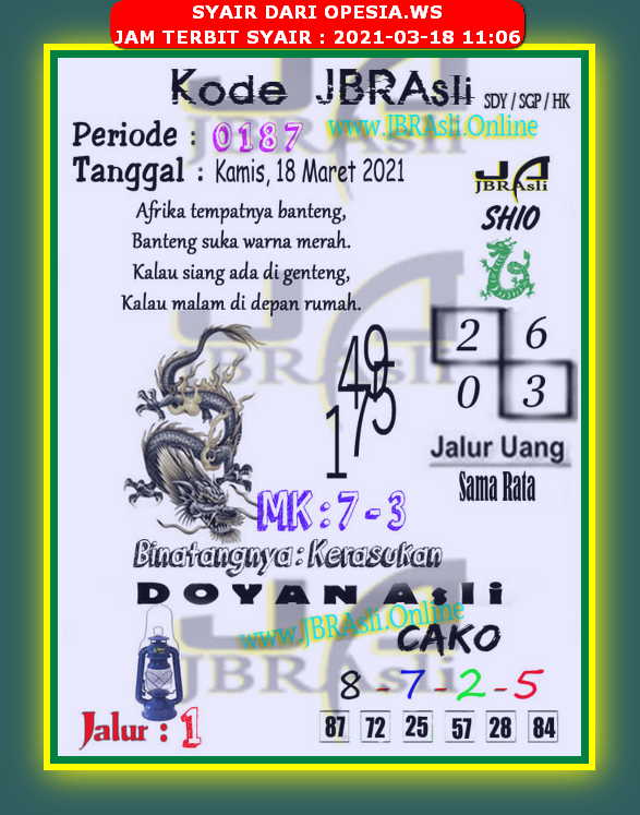 Syair Sdy Hari Ini Kamis 18 Maret 2021 Opesia Official
