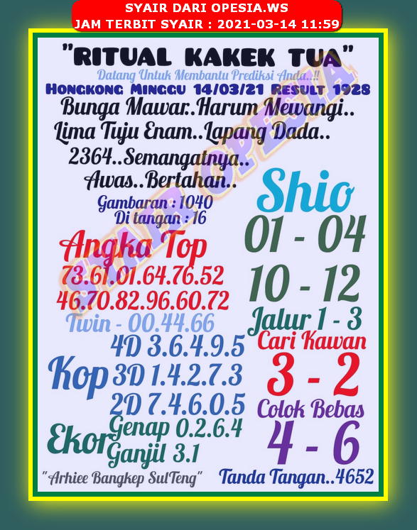 Syair Sgp Hari Ini Minggu 14 Maret 2021 Opesia Official