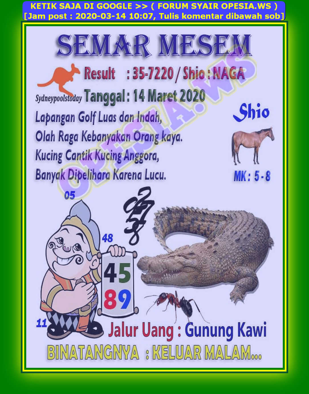 1 New Message Kode Syair Sydney 14 Maret 2020 Forum Syair Togel Hongkong Singapura Sydney