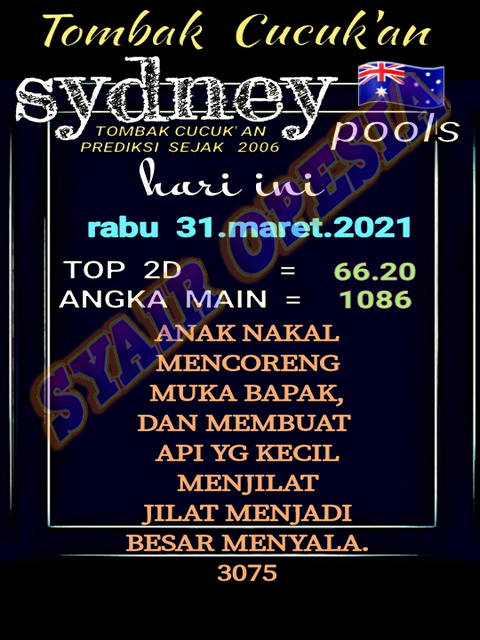 Prediksi Syair Sydney 31 Maret 2021 Keluaran Sydney Judi Slot
