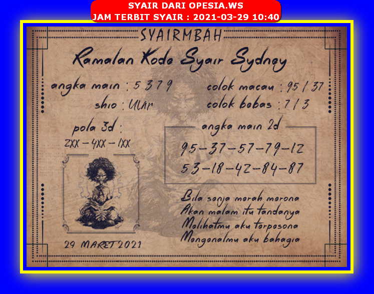 Syair Sdy Hari Ini Senin 29 Maret 2021 Opesia Official