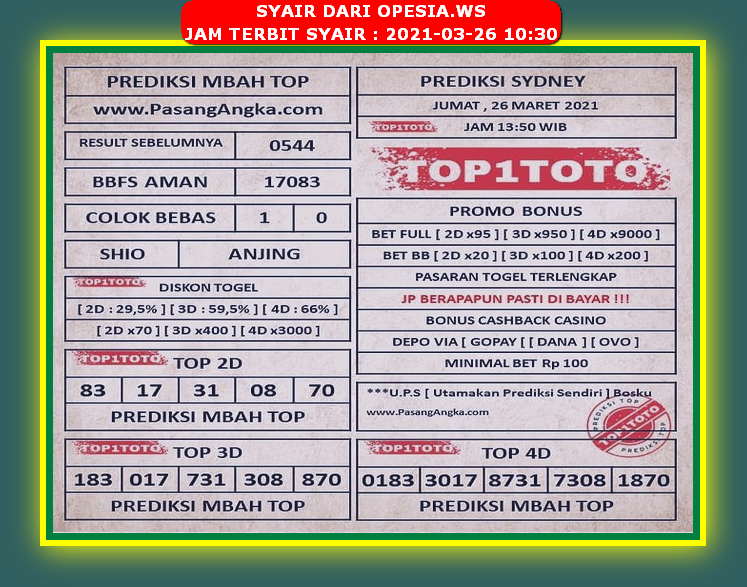 Syair Sdy Hari Ini Jumat 26 Maret 2021 Opesia Official