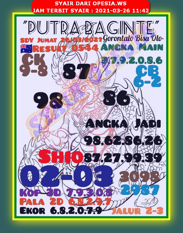 Syair Sdy Hari Ini Jumat 26 Maret 2021 Opesia Official