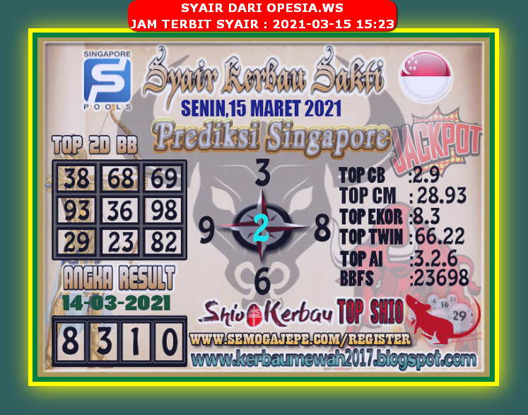 Syair Sgp Hari Ini Senin 15 Maret 2021 Opesia Official
