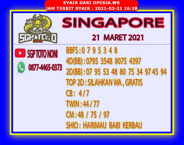 Syair Sgp Hari Ini Minggu 21 Maret 2021 Opesia Official