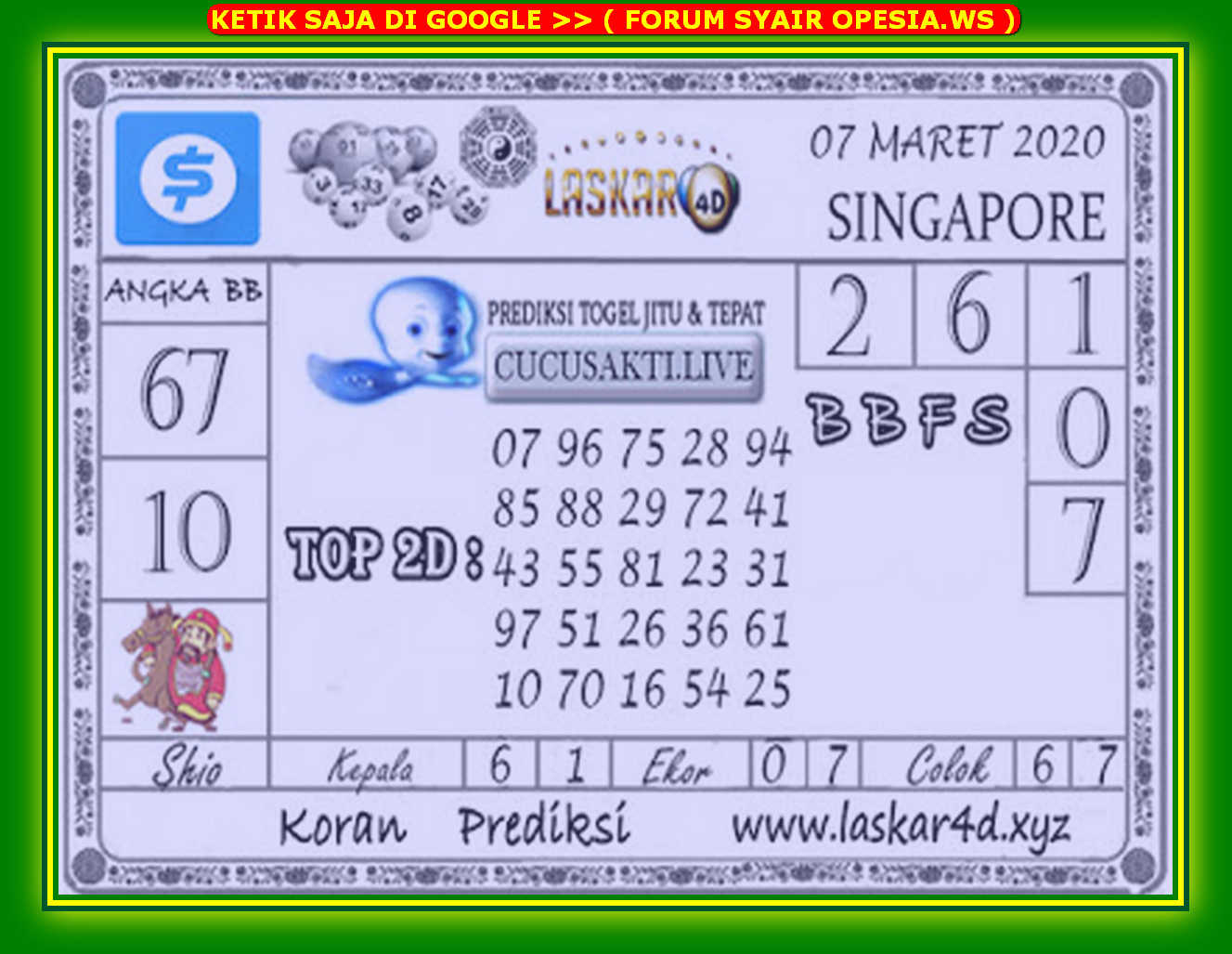 Syair Sgp Hari Ini Minggu 7 Maret 2021 Opesia Official