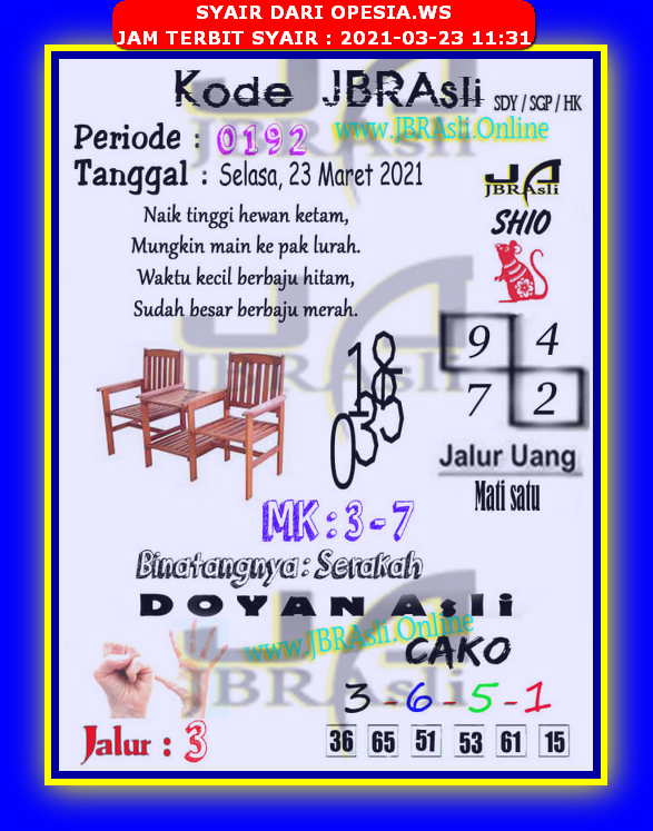 Syair Sdy Hari Ini Selasa 23 Maret 2021 Opesia Official