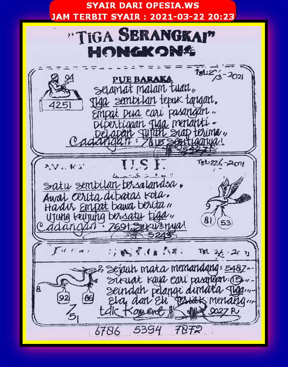 Syair Hk Hari Ini Senin 22 Maret 2021 Opesia Official