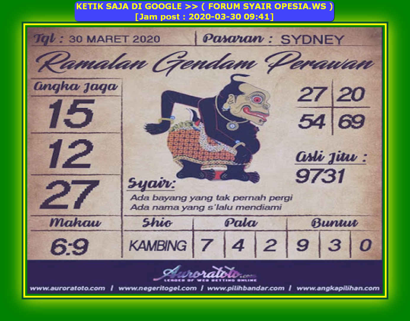 Kode Syair Sydney 30 Maret 2020 Forum Syair Togel Hongkong Singapura Sydney