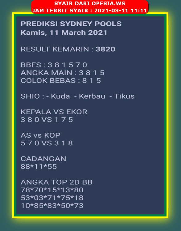 Syair Sydney Kamis Hari Ini 11 Maret 2021 Royal Syair