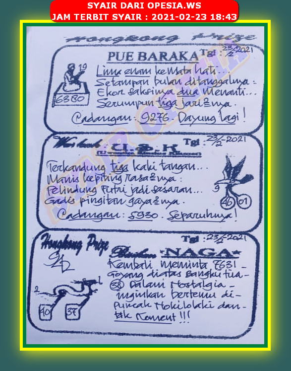 Syair Harian Hk 23 Februari 2021 Kode Syair Sgp Hk Sd Motesia